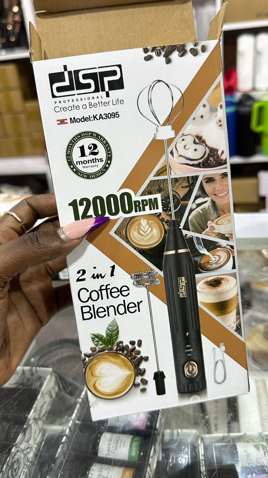 DSP 2-in-1 Rechargeable Coffee Blender – KA-3095 (12000 RPM)